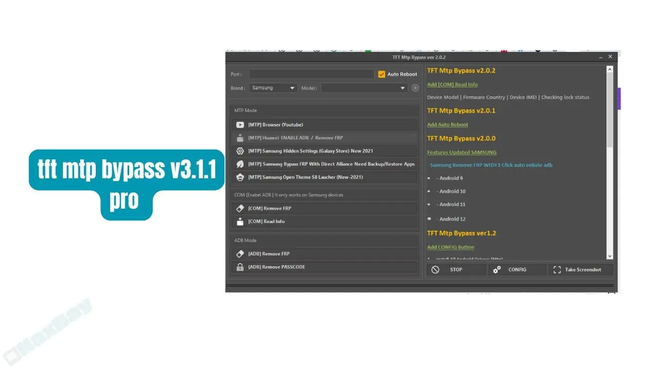 however, the amazing thing are that the tft mtp bypass v3.1.1 pro also supports all andoid mobile started from Android 14 to 11 all , so you can remove any stubborn locks.